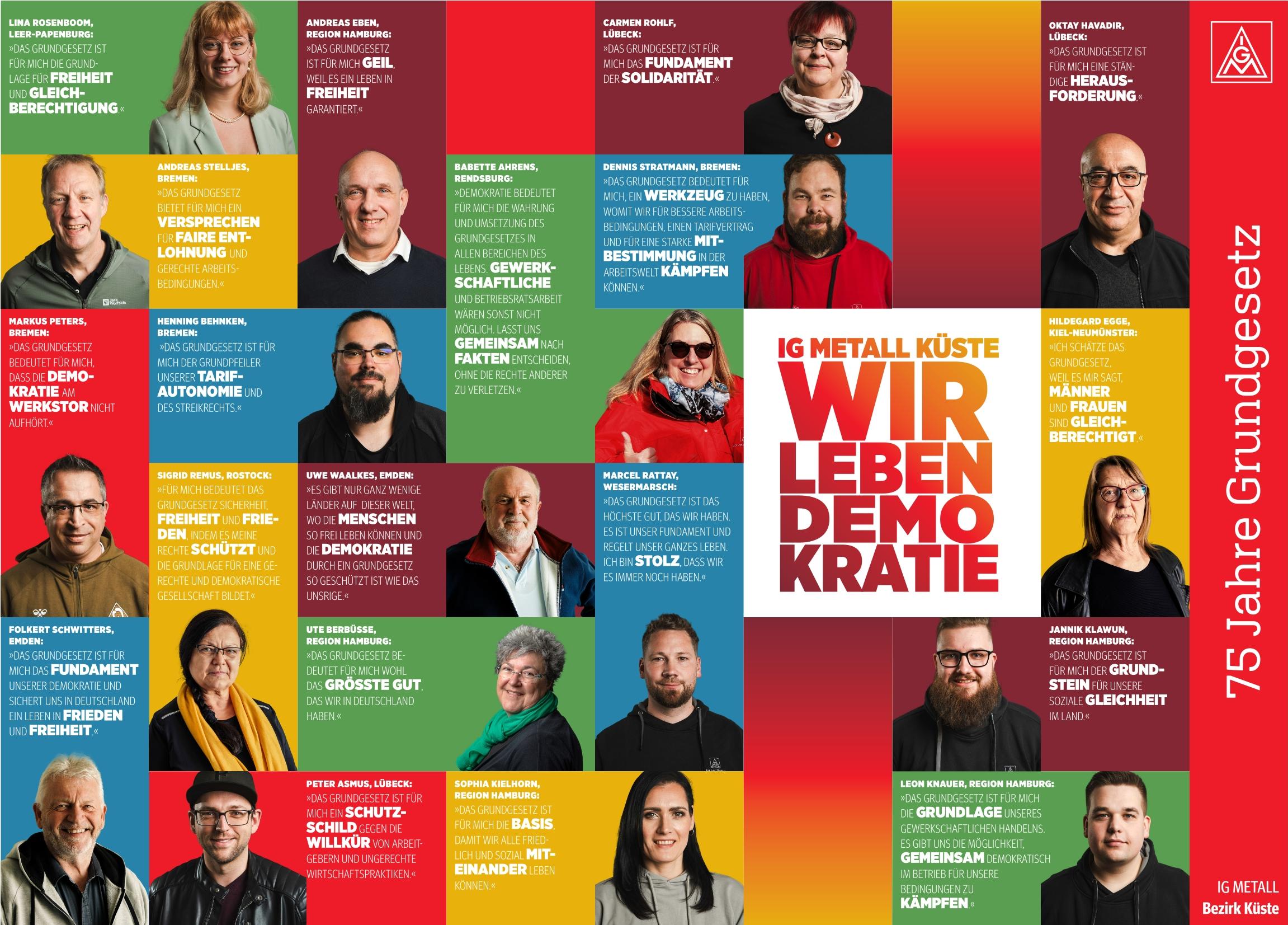 ... der an alle norddeutschen Geschäftsstellen und in die Betriebe verteilt wurde. Darin erklären Mitglieder der Gewerkschaft, welche Bedeutung das Grundgesetz für sie hat und wie sie Demokratie leben.