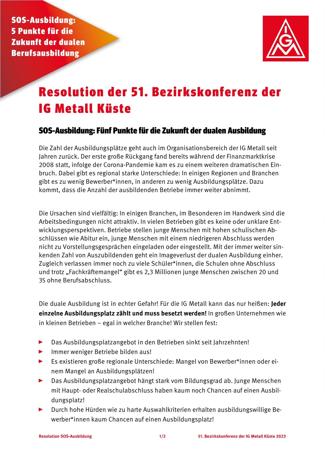 „Die duale Ausbildung ist in echter Gefahr. Für die IG Metall kann das nur heißen: Jeder einzelne Ausbildungsplatz zählt - in großen Unternehmen wie in kleinen Betrieben, egal in welcher Branche“, so Daniel Friedrich, Bezirksleiter der IG Metall Küste. „Wir dürfen junge Menschen mit geringerer Qualifizierung nicht ausgrenzen, sondern müssen sie fördern und ihnen eine Chance geben.“