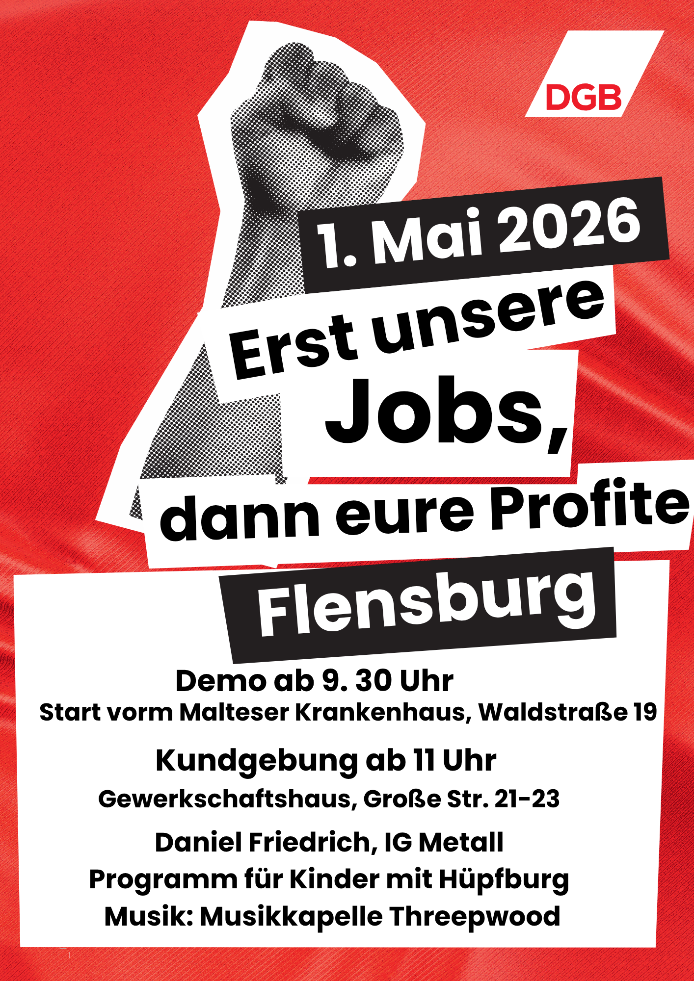 Der 1. Mai ist unser Tag. In Flensburg gehen wir gemeinsam auf die Straße – für Solidarität, gute Arbeit und eine gerechte Zukunft.
