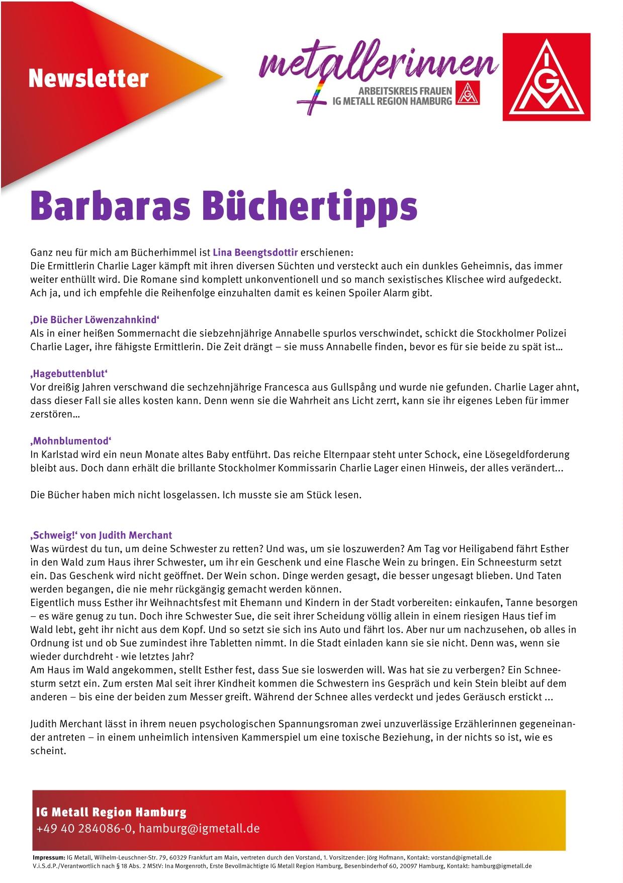 2022 Newsletter Metallerinnen - Babaras Büchertipps
